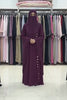 Women’s Plum A-Line Abaya with Side Button Detail and Draped Shawl Layer